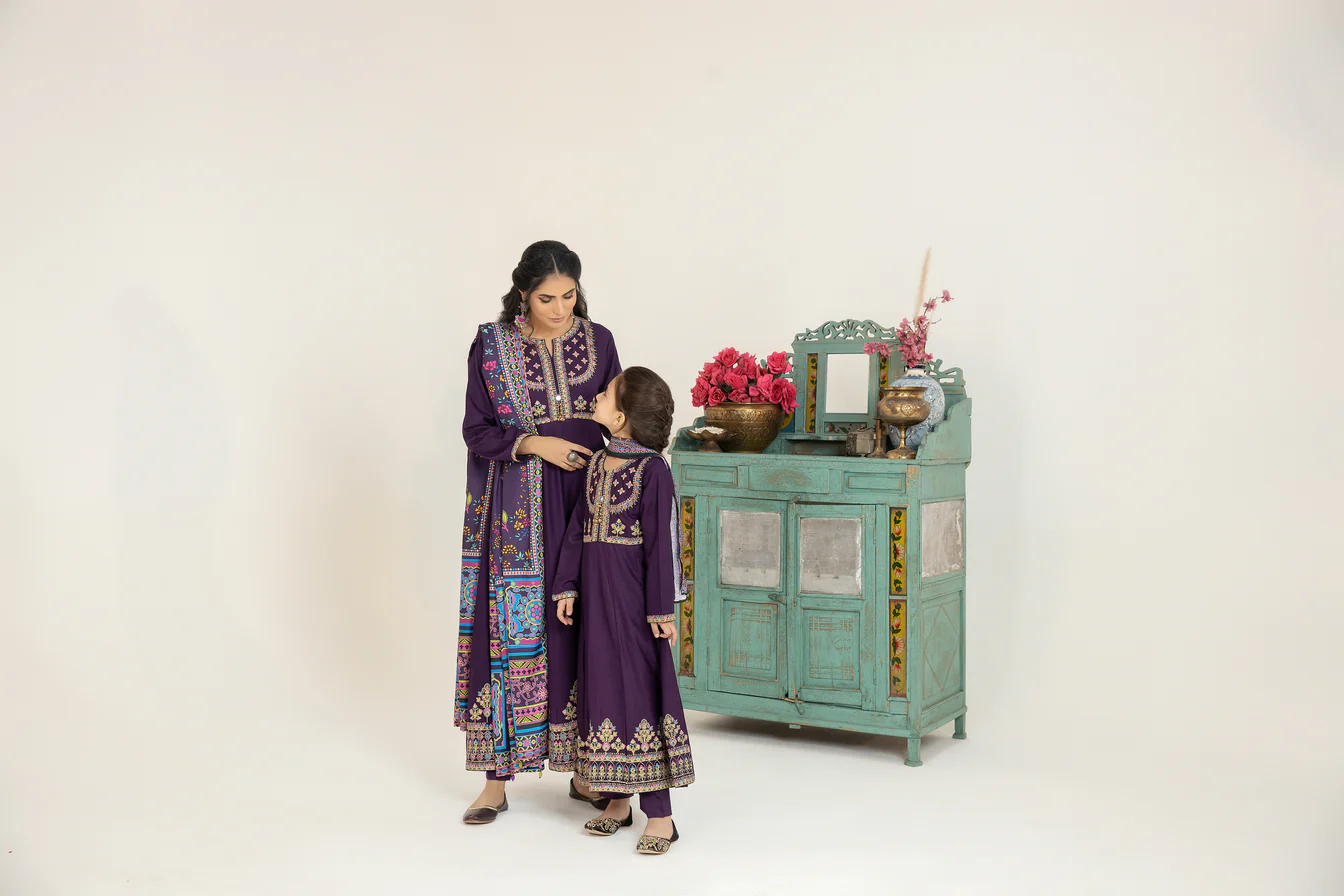 Mona Kids Embroidered Dhanak Dress K02